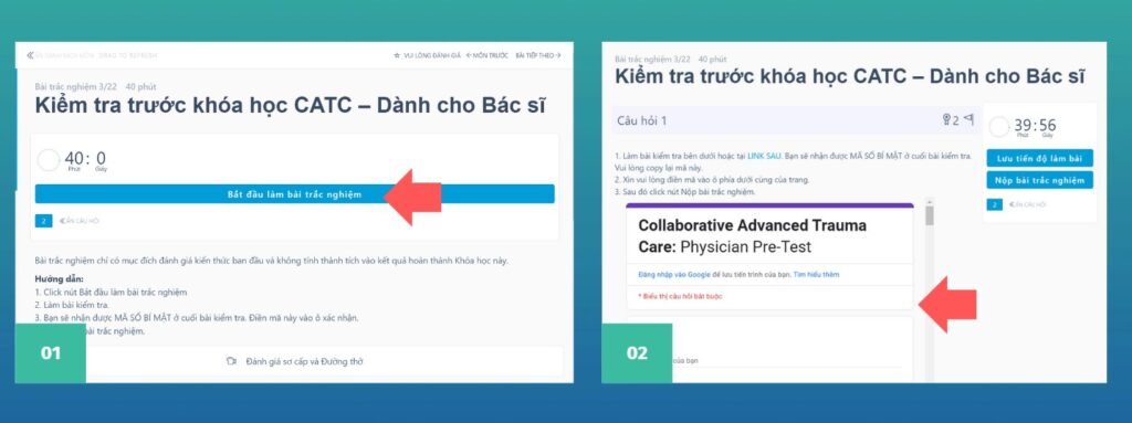 - Click vào Bắt đầu bài trắc nghiệm và làm tại Bài kiểm tra hiện lên sau đó.