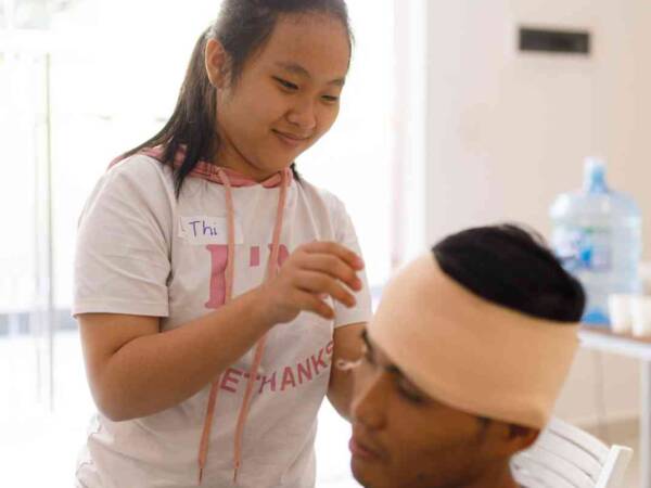 Performing first aid together, promoting team spirit